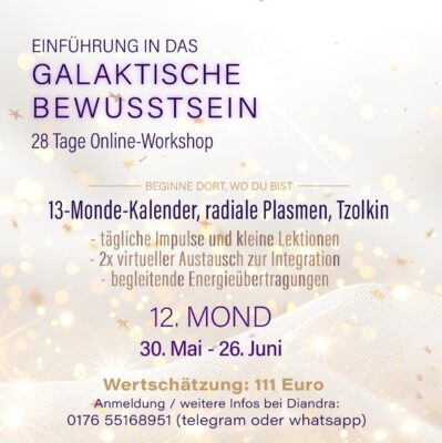 Ein vierwöchiger Online-Kurs wird ab Kin 172 (Kristallener 12. Mond)) angeboten: 30. Mai 2026. Wir werden in Kürze eine separate Ankündigung verschicken.